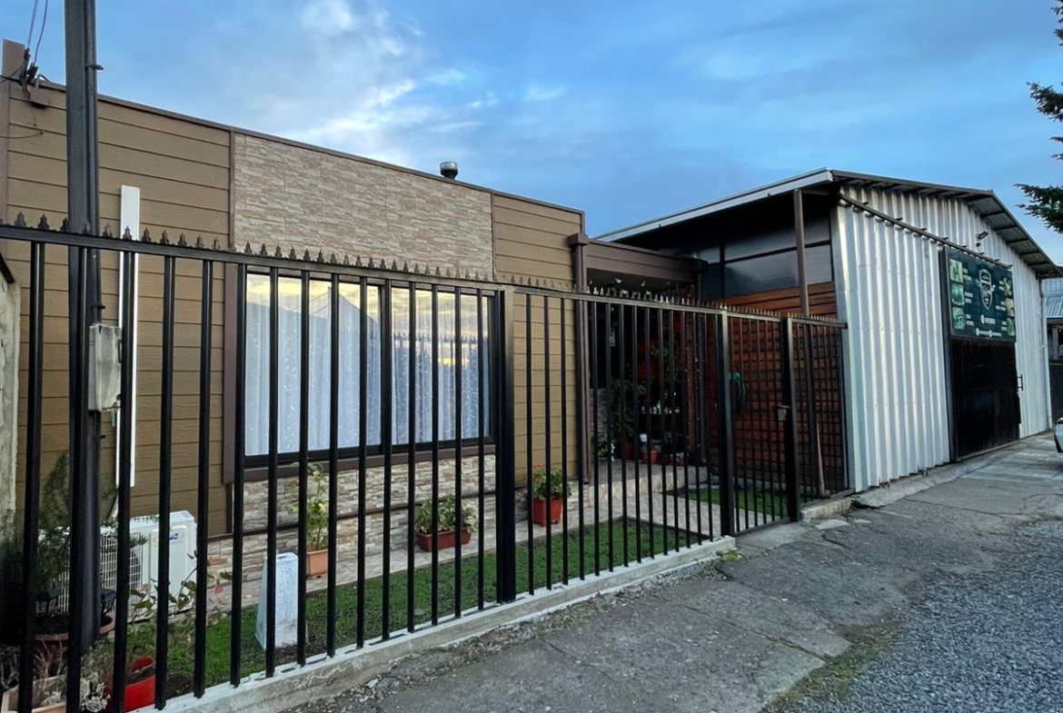 JCS Propiedades Vende cómoda y acogedora casa de 1 piso, con amplio taller o local comercial, muy bien ubicada en plena avenida Confederación Suiza de Victoria. A minutos del CESFAM y del centro de Victoria.